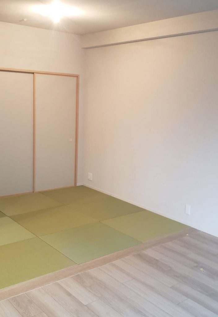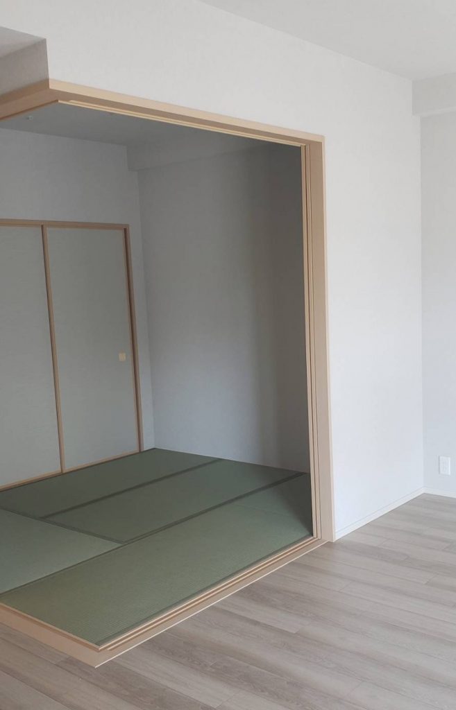 今回はこちらの、新築マンションの和室を琉球畳に新調し、間仕切り撤去も行いました。