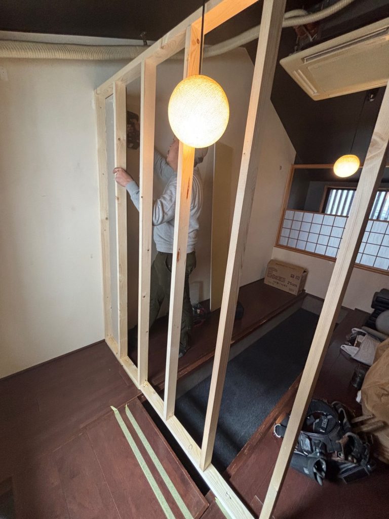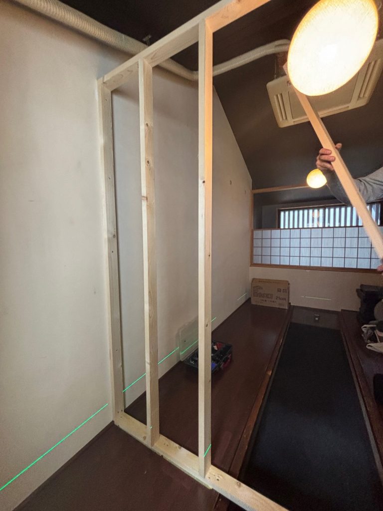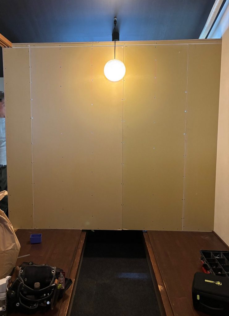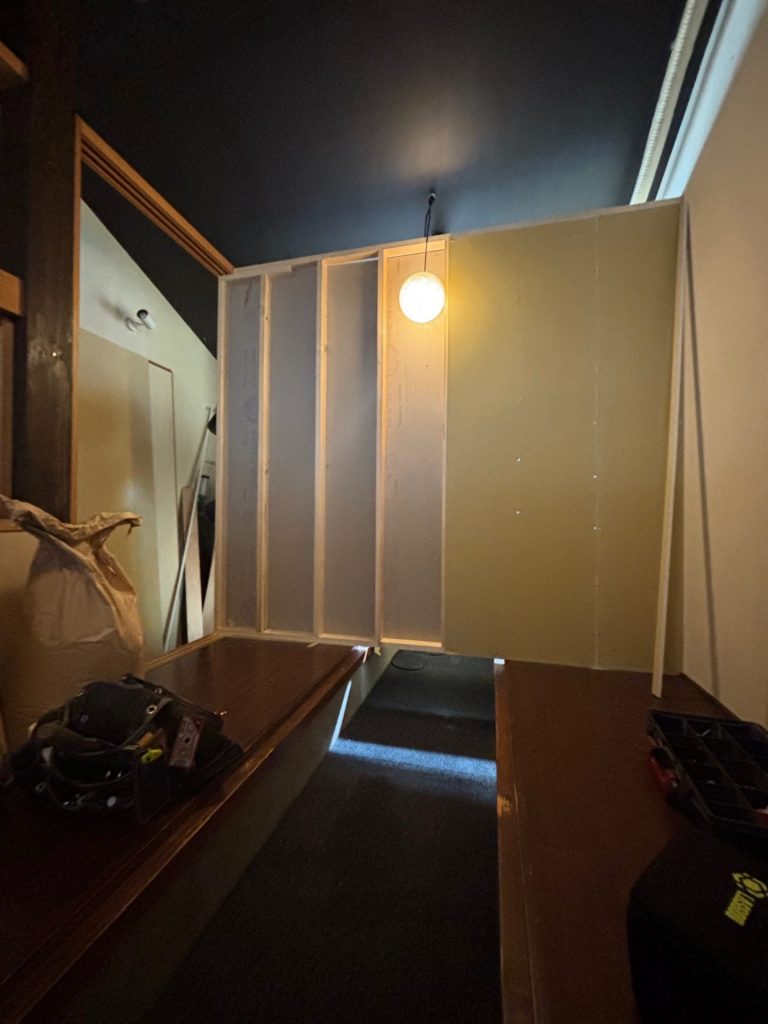 今回は、飲食店舗のお客様スペースとバックヤードの間仕切りを製作しました。